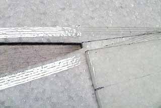 グラステープを貼った後、カッターで一部切込みを入れて左右に裂いて下さい。