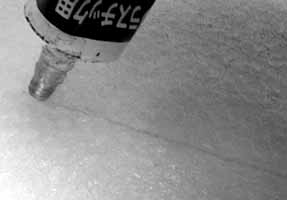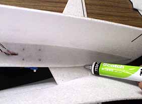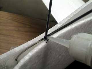 溝に接着剤を塗り、すぐにカーボンロッドを押し込みます。