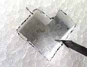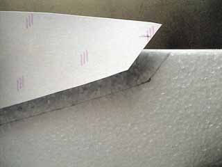 カッターの刃を少しだけ出し、ライン上に切込みを入れます。