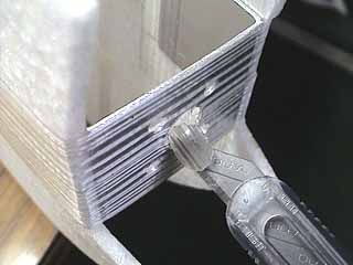 ラダーは下から100mmの所に切り込みをいれて、接着剤を塗ったホーンを押し込んでください。