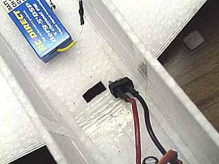 バッテリーの位置で重心を調整し、マジックテープで搭載してください。