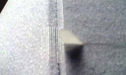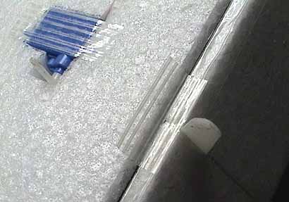 前縁部には半分に裂いたグラステープを張り巡らせてください。