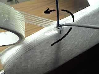 後縁中央部に100mmほどの長さのグラステープを巻いてください。