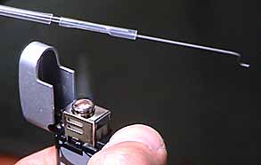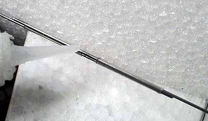 最先端から100mmの位置に、1.2mmカーボンロッドを埋め込む作業を行います。
