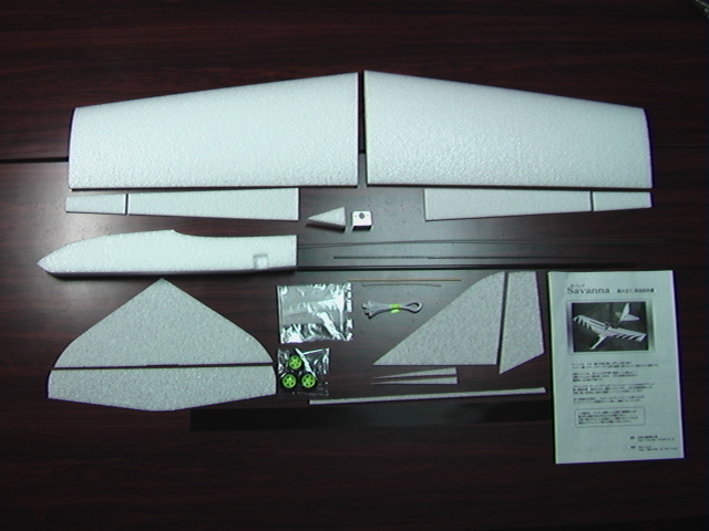 | SAVANNA組み立てキット(塗装済み) | 塗装済みEPP無垢胴体、塗装済みEPP無垢左右主翼(RG15捻り下げ付き)、EPP水平、垂直尾翼、各動翼セット、カーボンパイプ、カーボンシート、ピアノ線(1.0mm、1.2mm、1.6mm)、スポンジタイヤセット、ジュラコン動翼ホーン、ジュラコンT型補強板、ジュラコン主翼後縁補強板、PP板主脚補強板、ジュラコンホイールストッパー、アルミモーターマウント,主翼固定用ゴム、竹ヒゴ、伸縮チューブ、ノイズレスチューブ、キット内容等詳細については、説明書をご確認ください。 | 9,450円 |
